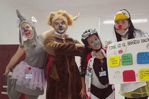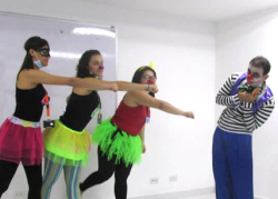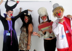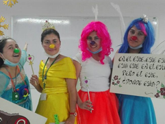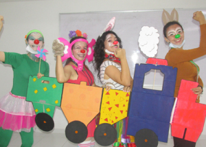 Los niños ayudarán a Choki para que se convierta en una payasita real con vestuario y peluca de colores.