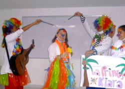 Una simpática profesora recibe una llamada de la pollita "pelo de oro" que llega a Colombia con el objetivo de estudiar en chocoenglish para poder actuar en DISNEY WORLD.